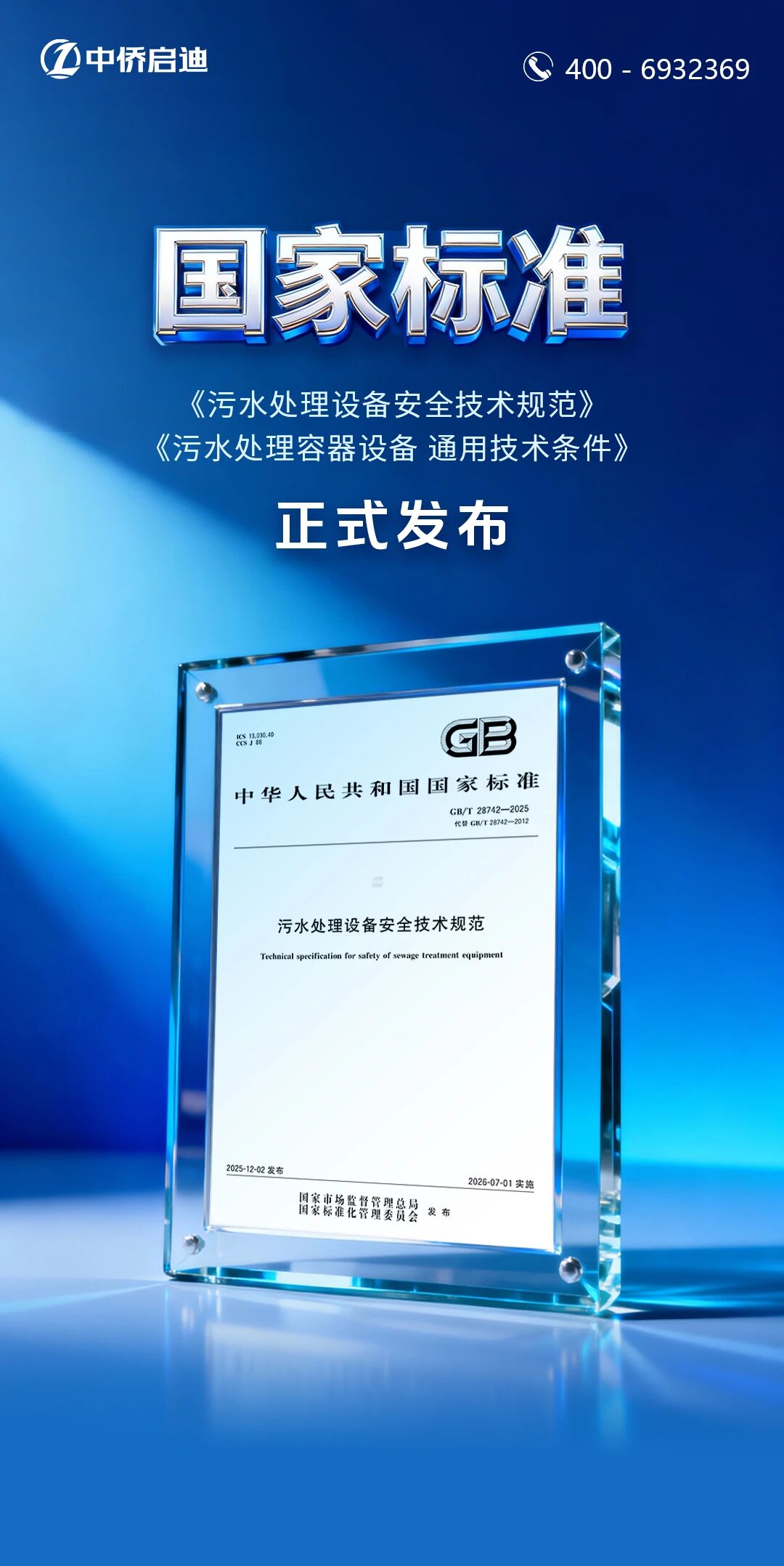 近日,国家市场监督管理总局与国家标准化管理委员会正式发布了《污水处理设备安全技术规范》(GB/T 28742—2025)和《污水处理容器设备 通用技术条件》(GB/T 28743—2025)两项国家标准。这是我国污水处理行业标准化体系建设的重要里程碑,标志着行业在设备安全与质量控制方面迈上新台阶。