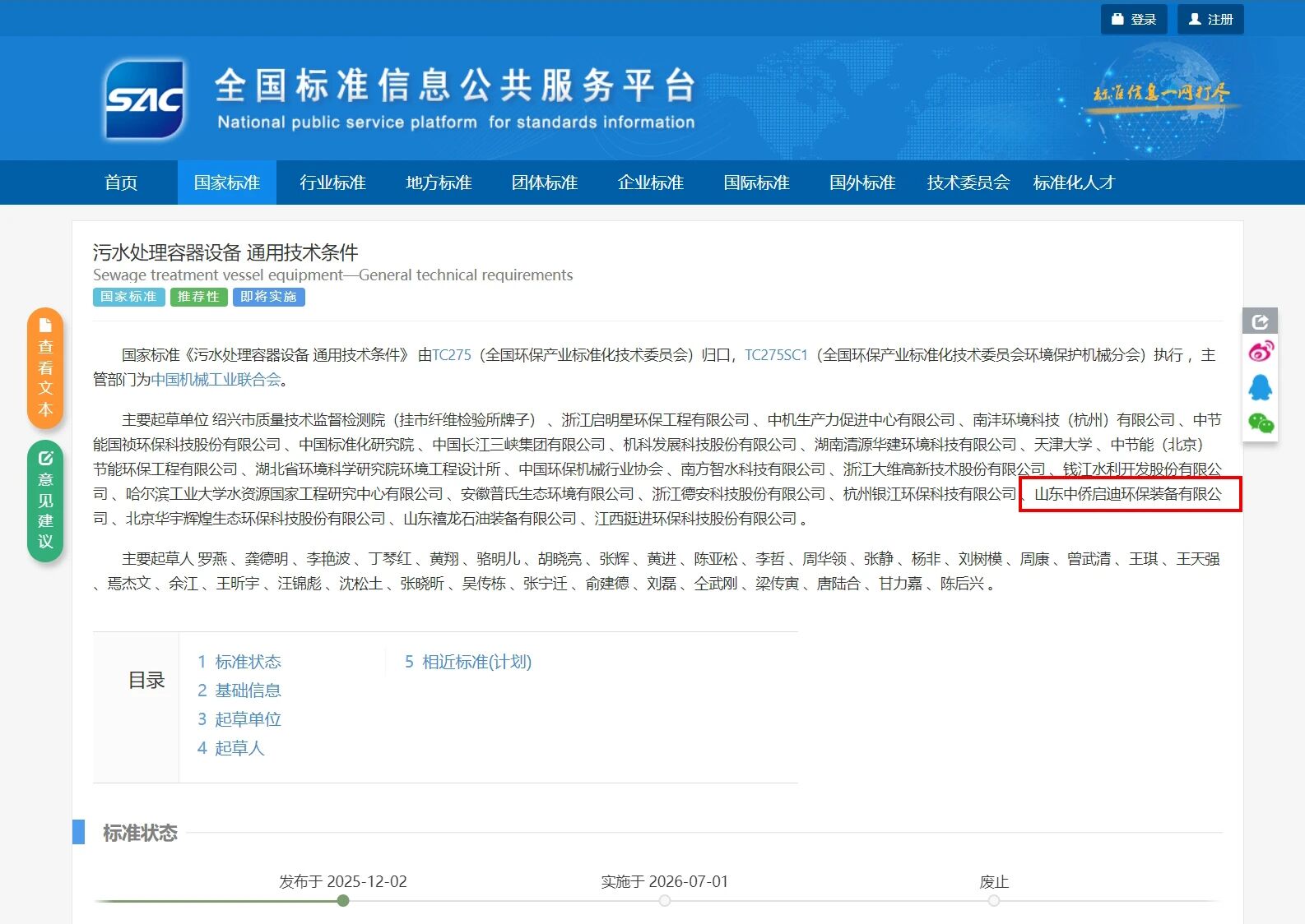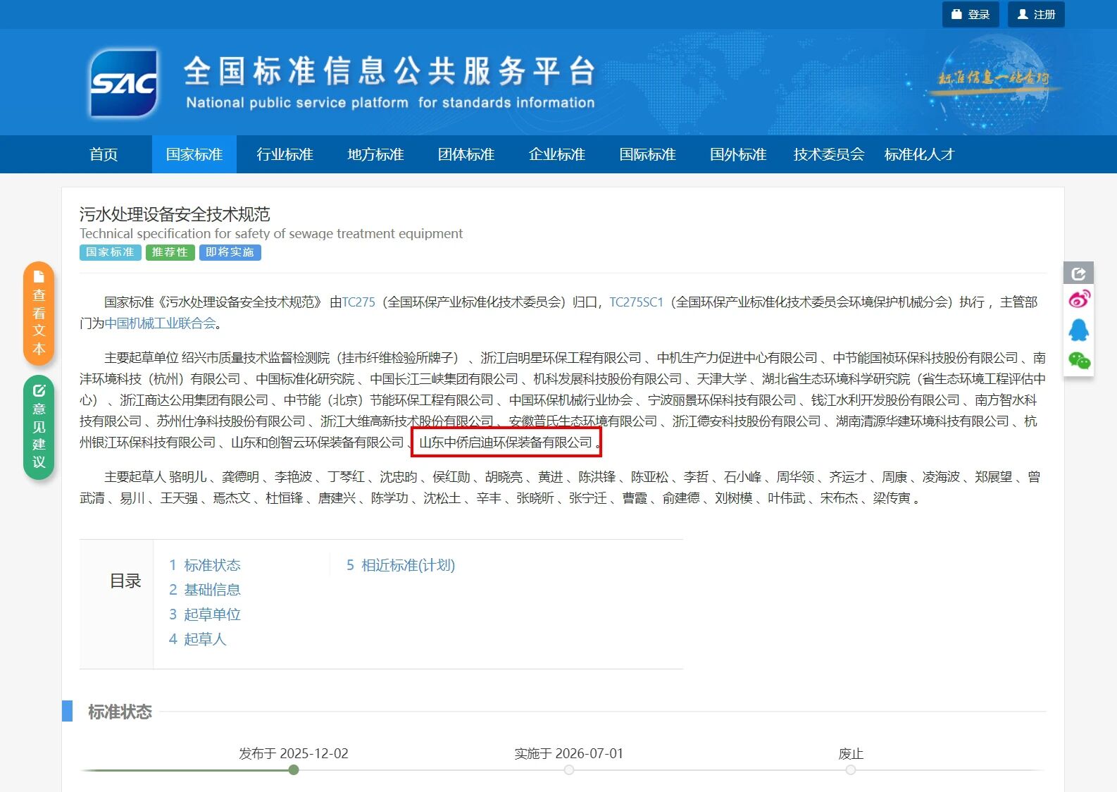 作为国内污水处理领域的技术创新企业,中侨启迪深度参与了这两项国家标准的制定工作。公司总经理梁传寅凭借在污水处理行业多年的技术积累与实践经验,以起草人身份全程参与了标准的研讨、编制与完善过程,为行业标准的科学性、适用性与先进性贡献了专业智慧。