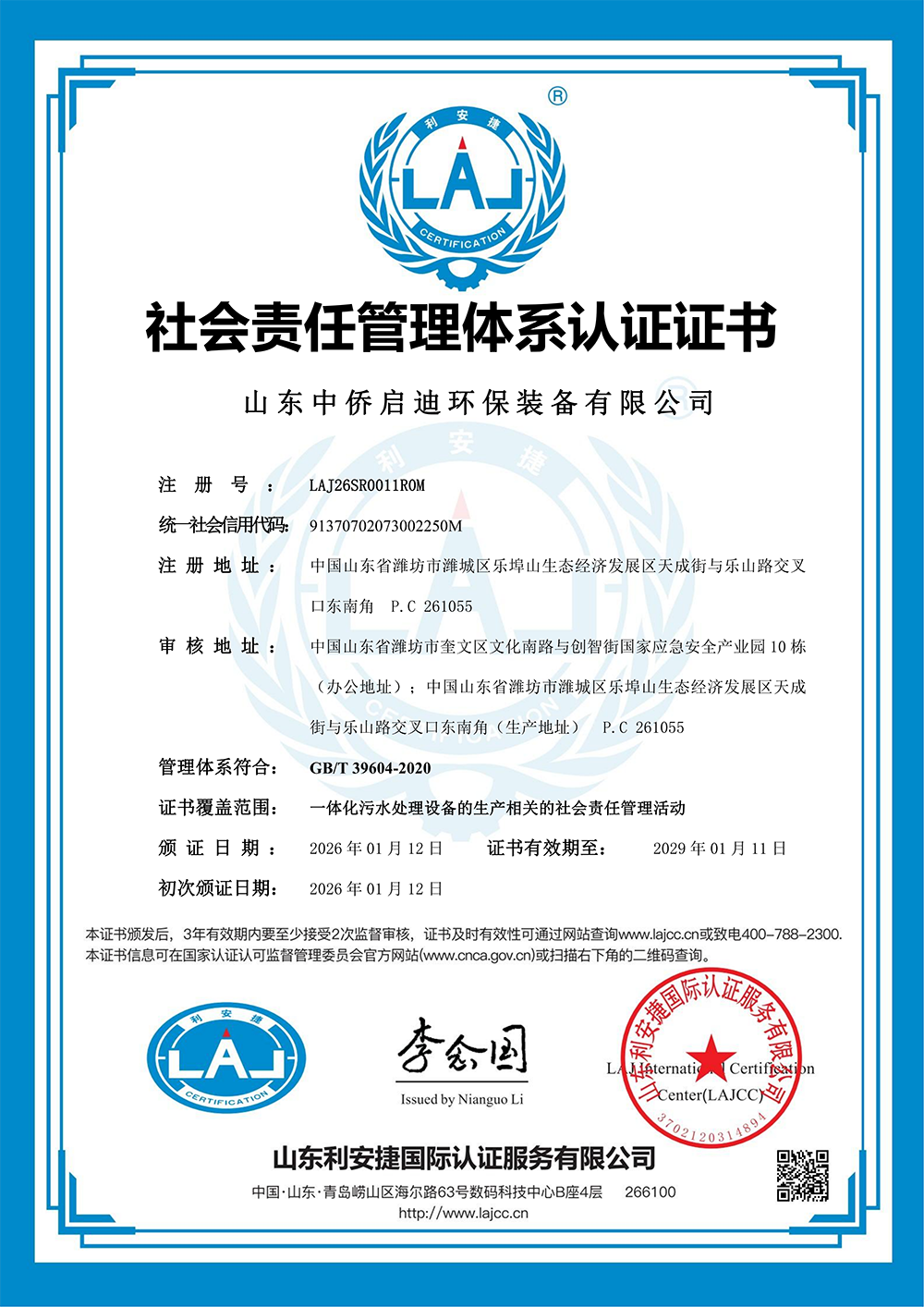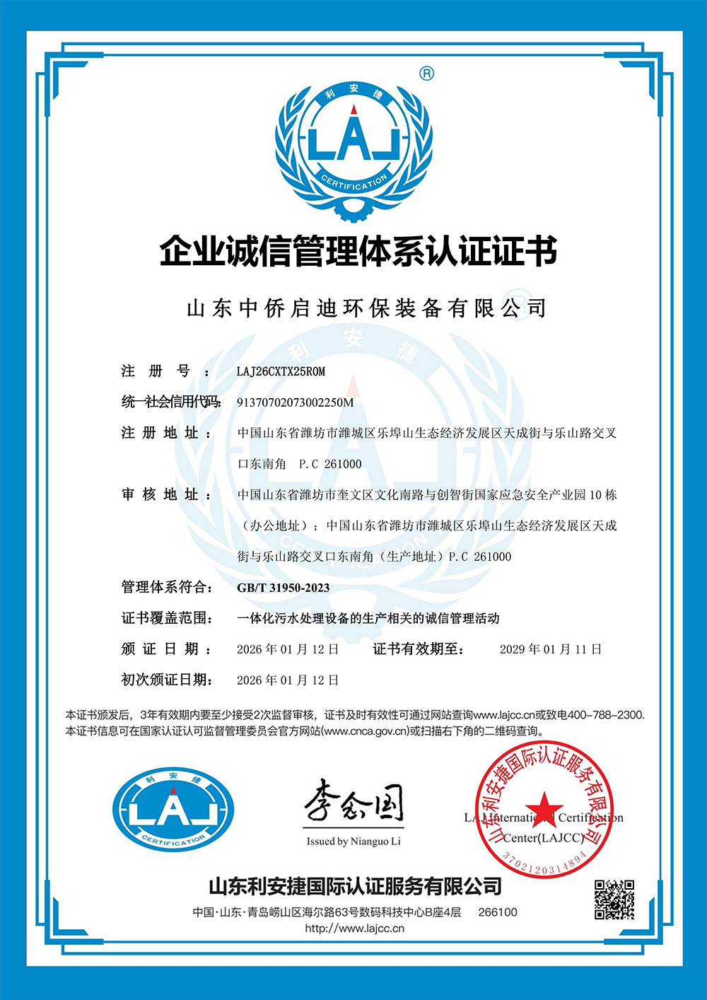 此次三项权威认证的集中落地,是对中侨启迪在企业社会责任、诚信经营管理和产品售后服务质量的全面肯定。未来,中侨启迪将继续以更高要求、更优质服务,在污水处理设备行业中树立标杆,在企业的高质量发展道路上稳步前行,为水处理行业发展贡献更大力量。
